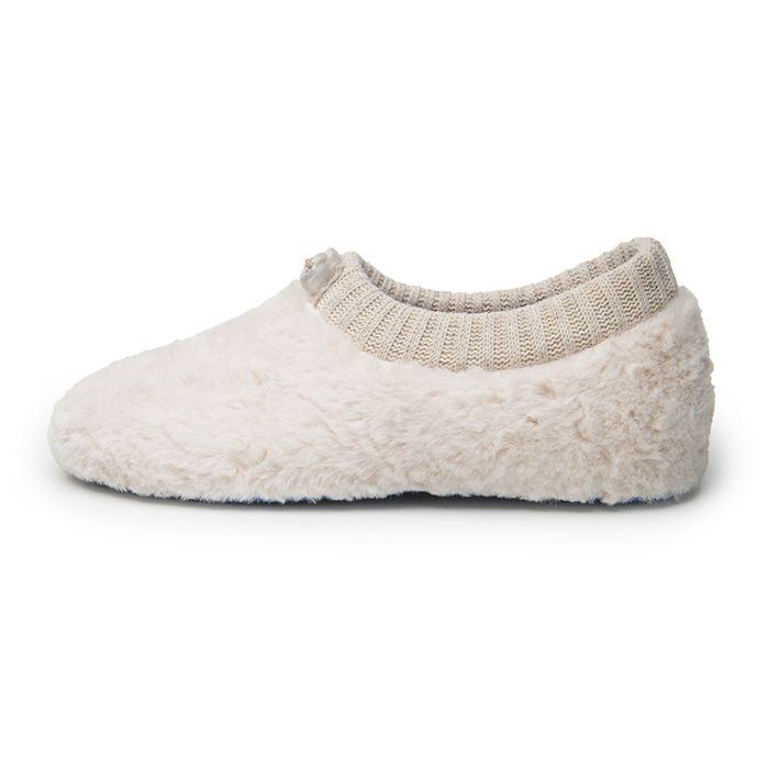 Sol, nuestra zapatilla de casa cerrada para mujer fabricada en tejido suave color crudo y con plantilla extraíble. Se caracteriza por su comodidad interior, ligereza y flexibilidad de la suela.