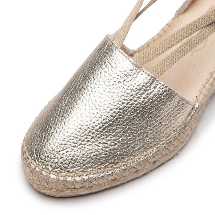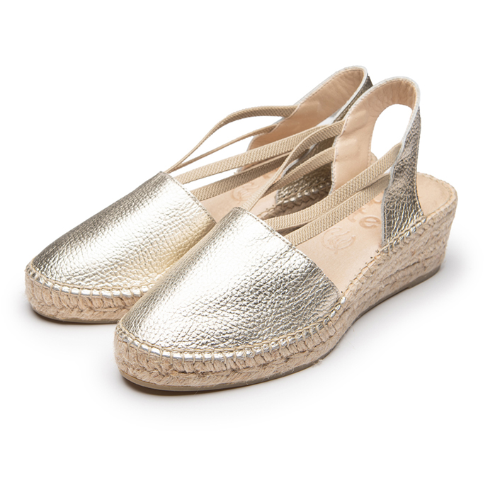 Adela es nuestra alpargata fabricada en piel metal oro, con el interior forrado y con elásticos en los laterales que hacen que sea una alpargata para cualquier momento del día debido a su gran comodidad.