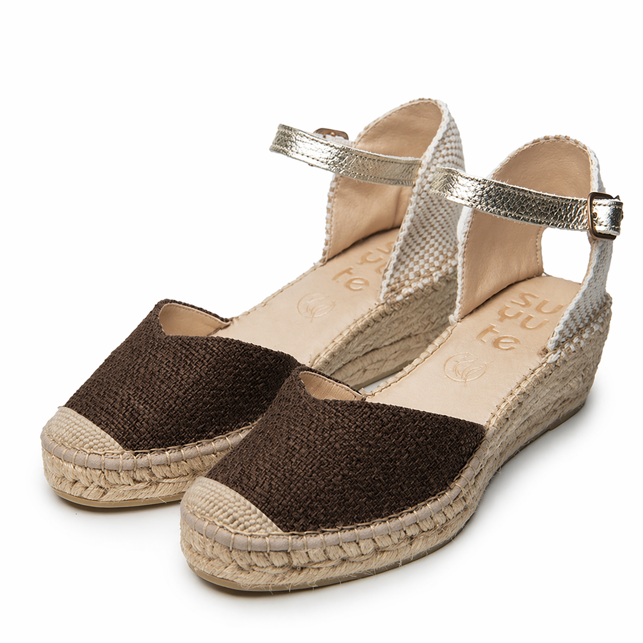Suela de cuña baja en yute 100% ecológica de color natural y con goma antideslizante.